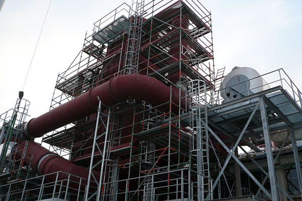Ansicht eines Allroundgerüsts an einem Industriebauwerk