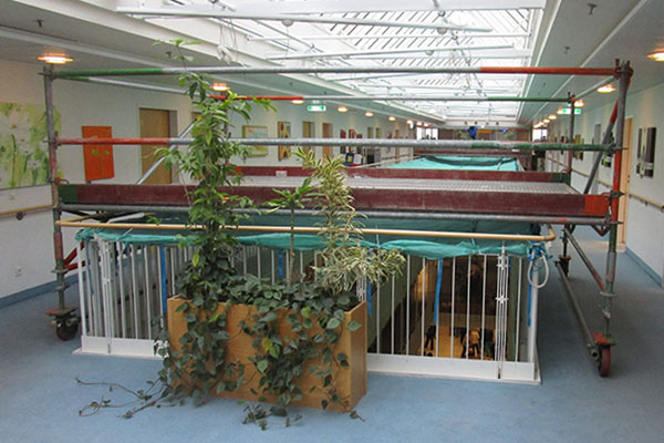 Ansicht eines im Innenraum aufgestellten Fahrgerüstes