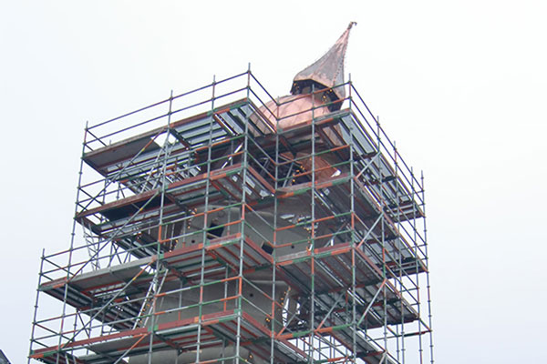 Aufzug an einem Arbeitsgerüst an einer Kirche