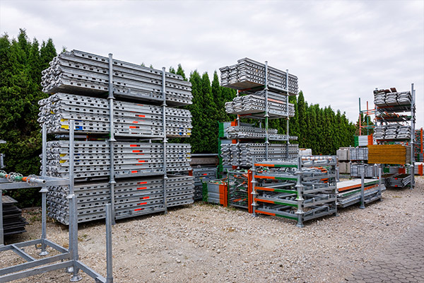 Dank großem Materialbestand an Rahmen- und Modulgerüsten, Sonderteilen sowie Zubehör und firmeneigenen LKWs (7,5t – 33t) versorgen wir kleine wie große Projekte zuverlässig und zeiteffizient.